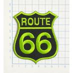 ROUTE66 ルート66 ライトグリーン×黒 エンブレム型 変形型【のりもの その他 刺繍 アイロンワッペン】
