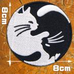 刺繍 アイロン ワッペン【勾玉 2匹の猫】直径8cm まがたま ネコ ねこ 猫 かわいい 白 黒 アニマル 動物 猫柄 猫好き 猫雑貨 のりつき