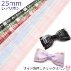 両面プリントリボン サイド箔押しチェックリボン 幅25mm 1m単位 切り売り (2m以上)