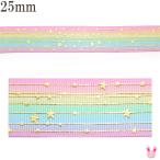 プリントリボン 箔押しラインスターと虹色リボン 幅25mm 1m単位 切り売り (3m以上)