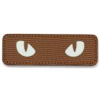 ワッペン 猫の目 蓄光・発光素材 マジックテープ(ベルクロ・面ファスナー)着脱式 ミリタリー サバゲー ネコの目が光る刺繍パッチ (カーキ茶色)