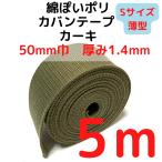 カバンテープ50mm(S)薄手 1.4mm厚 カーキM綿ぽいアクリルテープ風 KTS50K5