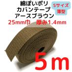 カバンテープ25mm(S)薄手 アースブラウン5M綿ぽいアクリルテープ風 KTS25ABR5