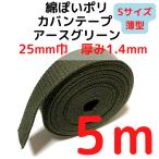 カバンテープ25mm(S)薄手 1.4mm厚 アースグリーン5M綿ぽいアクリルテープ風 KTS25AGR5