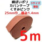 カバンテープ25mm(S)薄手 1.4mm厚 くすみピンク5M綿ぽいアクリルテープ風 KTS25P5