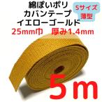 カバンテープ25mm(S)薄手 1.4mm厚 イエローゴールド5M綿ぽいアクリルテープ風 KTS25YG5