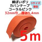 カバンテープ32mm(S)薄手1.4mm厚 コーラルピンク5M綿ぽいアクリルテープ風 KTS32CP5