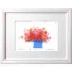吉岡浩太郎 『籠の花』(インチ判) ジグレ・シルクスクリーン版画 絵画 洋画 かわいい 小さい版画 秋の花 コスモス
