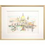 大前博士「 サンタ・マリア・デッラ・サルーテ聖堂 」 リトグラフ 版画 外国の風景 イタリア イタリヤ ベネチア ベニチヤ 教会 運河 ゴンドラ