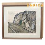 荻須高徳 坂のある風景 リトグラフ 直筆サイン エディション有り 額装絵画 アンティーク 作家物 / 9647