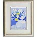 カワセミ 絵画 鳥 結婚祝い プレゼント シルクスクリーン 版画 吉村明子 「calm day S-2」 額付き