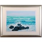 海 絵画 白波 岩 絵 シルクスクリーン 版画 池上壮豊 「蒼い海から」 額付き