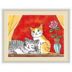 絵画 高精細デジタル版画 インテリア 壁掛け 額縁付き 千 春作 「慈しみのねこ」 F6