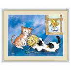 絵画 高精細デジタル版画 インテリア 壁掛け 額縁付き 千 春作 「幸福のねこ」 F6