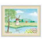 絵画 高精細デジタル版画 インテリア 壁掛け 額縁付き 青木 奏作 「水辺の風車」 F4