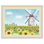 絵画 高精細デジタル版画 インテリア 壁掛け 額縁付き 青木 奏作 「ひまわりと風車」 F4