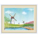 絵画 高精細デジタル版画 インテリア 壁掛け 額縁付き 青木 奏作 「チューリップと風車」 F4