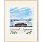 ジークレー版画 額装絵画 はりたつお作 「里山学校と冬鳥」 四ッ切