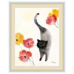 絵画 高精細デジタル版画 インテリア 壁掛け 額縁付き 榎本 早織作 「カーネーションと黒猫」 F6