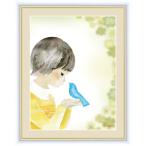 絵画 高精細デジタル版画 インテリア 壁掛け 額縁付き 榎本 早織作 「青い鳥とクローバー」 F6