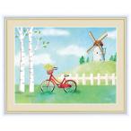 絵画 高精細デジタル版画 インテリア 壁掛け 額縁付き 青木 奏作 「自転車と風車」 F6