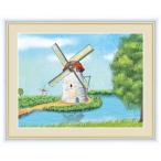 絵画 高精細デジタル版画 インテリア 壁掛け 額縁付き 青木 奏作 「水辺の風車」 F6
