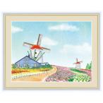絵画 高精細デジタル版画 インテリア 壁掛け 額縁付き 青木 奏作 「チューリップと風車」 F6