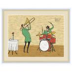 絵画 高精細デジタル版画 インテリア 壁掛け 額縁付き 橋北 太郎作 「ドラム&トロンボーン」 F6