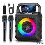 Bluetooth ミニ カラオケ スピーカー マイク 2本付き 家庭用 マイクスピーカー ワイヤレス karaoke 無線マイク LEDスピーカー 歌 練習 Android/iPhoneに対応