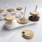 調味料入れ 6つのグループ 薬味入 PP スプーン付 ふた付 調理用具 キッチン用品 一味入れ ガラス容器 小さじ付 塩入れ 抹茶入れ 厚手 衛生的 収納ストッカー