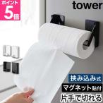 山崎実業 tower 片手でカットマグネット挟み込み式キッチンペーパーホルダー タワー 磁石 北欧 yamazaki 公式 白 黒 ブラック ホワイト 1450 1451