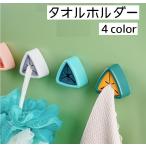 タオルホルダー 日用品雑貨 タオル掛け タオルハンガー 三角形 布巾かけ プッシュ 押し込み 粘着テープ 便利グッズ コンパクト おしゃれ かわいい