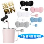【5色 各1個 計5個】 ストローキャップ リボン 適用10mm 飲用 装飾用 5色(ブラック、 グレー、ライトブルー、 ホワイト、ピンク)