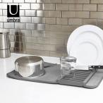umbra キッチンマット ディッシュラック グレー 水切りマット 大判 キッチン 吸水マット 丸洗い可 調整可 収納 ゴムバンド付き