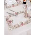 テーブルセンター 約60cmR 円形 総柄 刺繍 クラシカル レース ギュピールレース ローズ ホワイト ベージュ