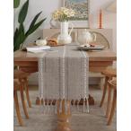 Bigqin テーブルランナー 183 x 33cm 綿麻製 食卓飾り テーブルクロス タッセル付き おしゃれ北欧風,
