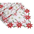 Flushbay クリスマス 飾り テーブルランナーおしゃれ 欧風 テーブルランナー 赤 花柄刺繍 食卓飾り