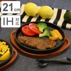 ステーキ皿 丸型 21cm スプラウト 鉄鋳物製 IH対応 木製プレート付き ( オーブン対応 ガス火対応 直火対応 鉄板 皿 ステーキ 丸 ラウンド 鉄製 )