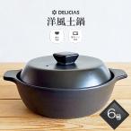 土鍋 6号 DELICIAS 電子レンジ対応 一人用 ブラック 1〜2人用 こぶり鍋 おしゃれ 小鍋 陶器 一人鍋 ガス火可能 直火OK 黒色 かっこいい デリシアス カクセー