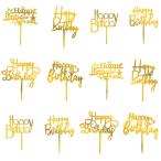 Paready ケーキトッパー 誕生日 ケーキ飾り 12点セット ケーキ挿入カード Happy Birthday ハッピーバー