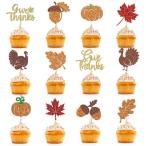 koundeneko 感謝祭 飾り付け カップケーキトッパー 24枚セット キラキラ メープルリーフ パンプキン
