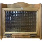 ブレッドケース チェッカーガラス パンプキンノブ アンティークブラウン 35×25×32cm 木製 ひのき ハンドメイド 受注製作