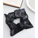 シュシュ アンティークフラワーデザインリボン付きブラックシュシュデザイン かわいい おとな 高級感 送料無料 まとめ髪 30代 40代 50代 プレゼント