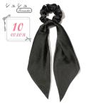 シュシュ ヘアゴム 髪ゴム レディース 女性 ヘアアクセサリー ファッション雑貨 リボン スカーフ風 サテン 無地 ブラック ホワイト ブルー グリー