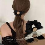 シュシュ リボン ヘアアクセサリー 髪飾り レディース 女性 アクセサリー ファッション小物 無地 単色 大ぶり まとめ髪 髪留め 上品 きれいめ か