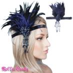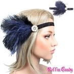ゴージャス☆フェザー&ビーズ ヘアカチューム/ヘアアクセサリー/ヘッドドレス ヘアバンド カチューシャ 羽根ブラックネイビー 黒紺 ダンス衣装 ウェディング