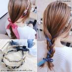 カチューシャ ビジュー編み込みロングリボンカチューシャ 大人 かわいい ラグジュアリー ビーズ ラインストーン パーティ プレゼント