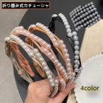 カチューシャ レディース ヘアアクセサリー 髪飾り 髪留め 折りたたみ 伸縮式 パール風 ヘアアレンジ おしゃれ 携帯 持ち運び