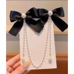 ヘアクリップ 「urge select」リボン パールチェーン ヘアクリップ