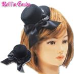 リボン付きミニハット/ヘッドドレス帽子シンプル無地ブラック黒ヘアアクセサリーパーティー結婚式ウェディングダンス衣装キッズダンサー発表会演奏会